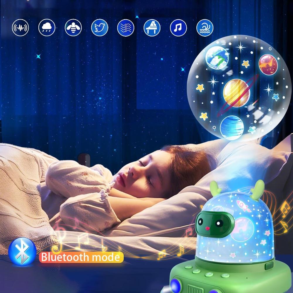 مصباح اضاءة للأطفال بتصميم روبوت ساحر يعرض سماء نجمية ملونة مع موسيقى هادئة، يعمل بالشحن USB وقابل للدوران، ليمنح طفلك أجواء نوم مريحة ومليئة بالخيال، ويعد هدية مثالية للأطفال في مختلف المناسبات.